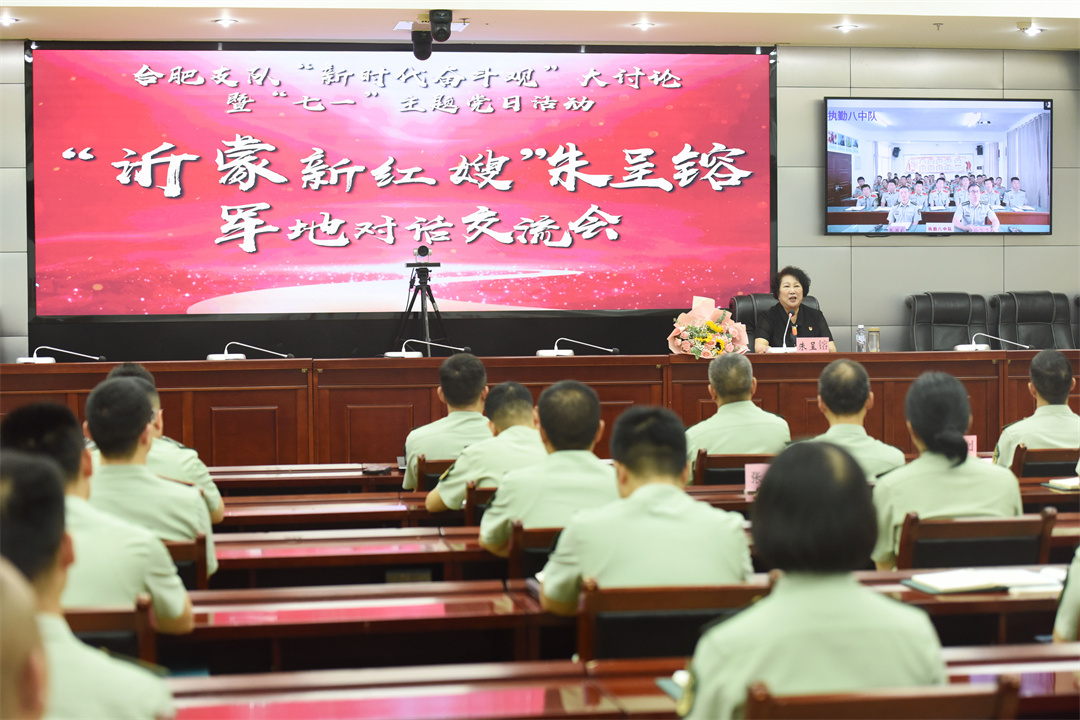 “七一”前夕,武警安徽總隊(duì)合肥支隊(duì)開展“新時(shí)代奮斗觀”大討論暨“七一”主題黨日活動。其間,邀請“全國最美擁軍人物”“全國爭先創(chuàng)優(yōu)優(yōu)秀共產(chǎn)黨員”“全國巾幗建功標(biāo)兵”“沂蒙新紅嫂”朱呈镕來到軍營,與支隊(duì)官兵對話交流,分享奮斗故事,傳播沂蒙精神。激勵廣大官兵賡續(xù)紅色血脈,砥礪初心使命,立足本職崗位奮斗拼搏,書寫精彩軍旅樂章。