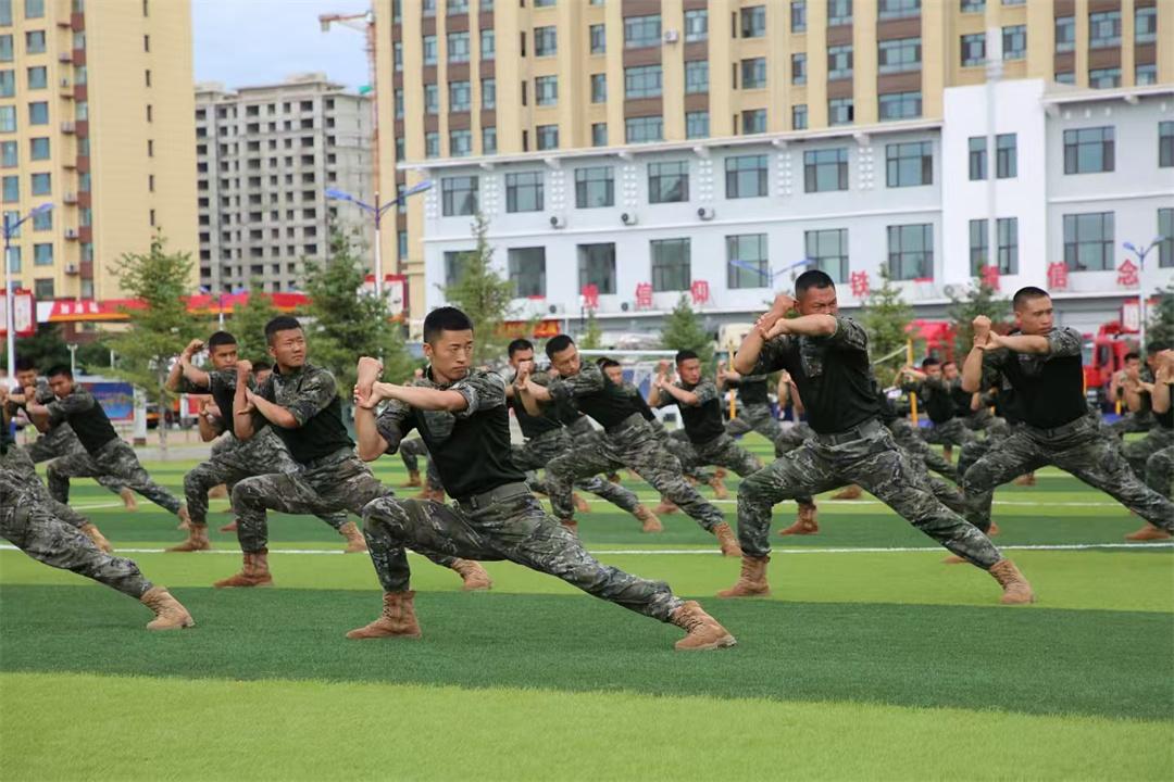 在武警興安支隊(duì)課目演示環(huán)節(jié),官兵們擒敵拳、刺殺操等課目霸氣凌厲、氣勢恢宏,展現(xiàn)出嚴(yán)謹(jǐn)扎實(shí)的戰(zhàn)斗作風(fēng)和奮發(fā)有為的精神風(fēng)貌。