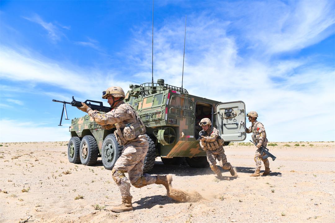 圖為“平型關大戰(zhàn)突擊連”在中蒙演習中下車戰(zhàn)斗。朱甫鑫 攝