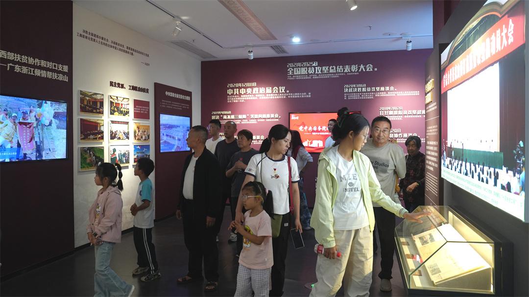 在“博物館奇妙游”環(huán)節(jié),航天家屬系統(tǒng)了解了脫貧攻堅戰(zhàn)略從頂層設(shè)計到基層實(shí)踐的全過程。展館內(nèi),翔實(shí)的文字?jǐn)?shù)據(jù)、震撼的紀(jì)實(shí)影像、珍貴的實(shí)物展品生動再現(xiàn)了涼山州上下勠力同心、攻堅克難的偉大歷程。