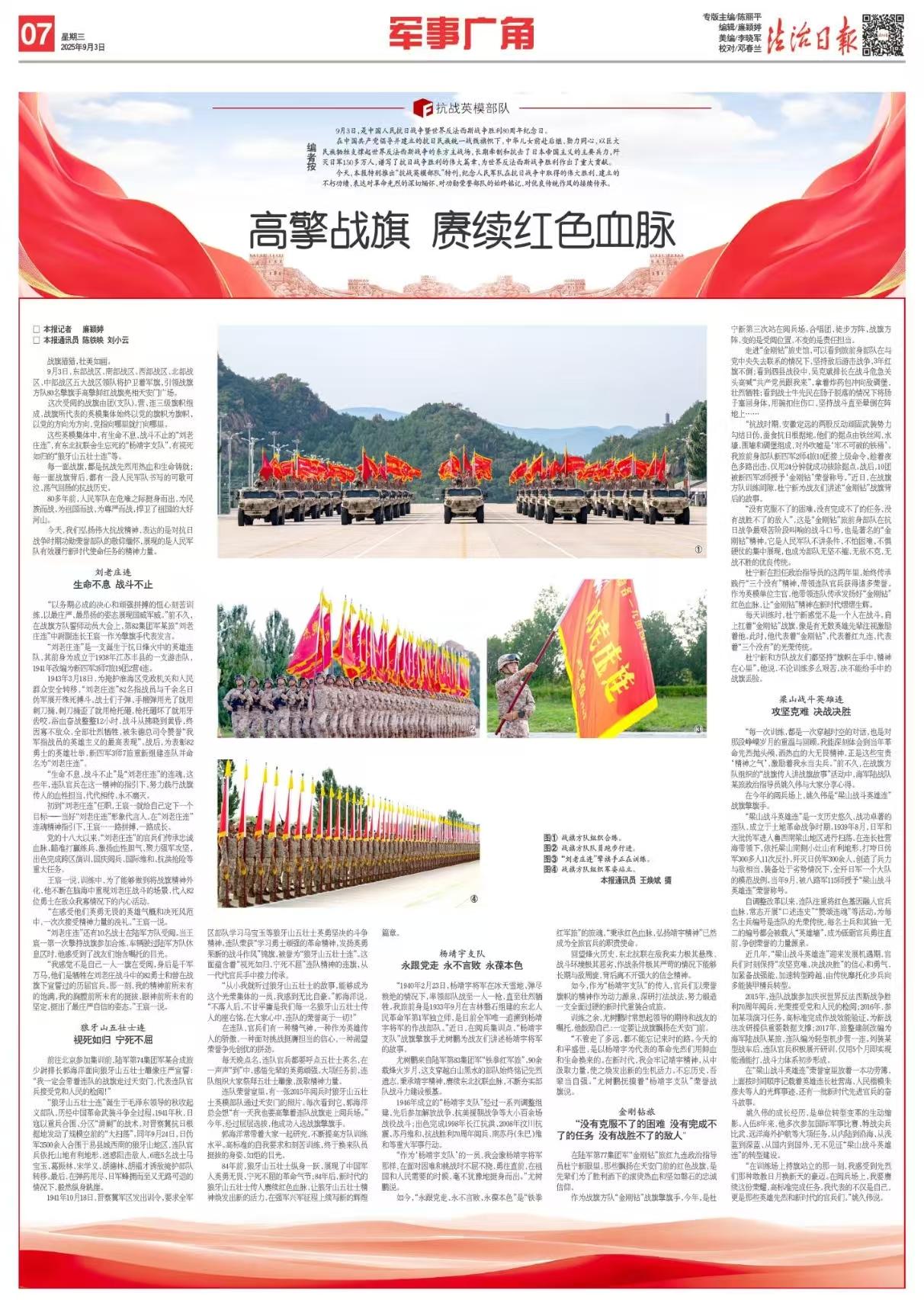 今天,本報(bào)特別推出“抗戰(zhàn)英模部隊(duì)”特刊,紀(jì)念人民軍隊(duì)在抗日戰(zhàn)爭(zhēng)中取得的偉大勝利、建立的不朽功績(jī),表達(dá)對(duì)革命先烈的深切緬懷、對(duì)功勛榮譽(yù)部隊(duì)的始終銘記、對(duì)優(yōu)良傳統(tǒng)作風(fēng)的接續(xù)傳承。