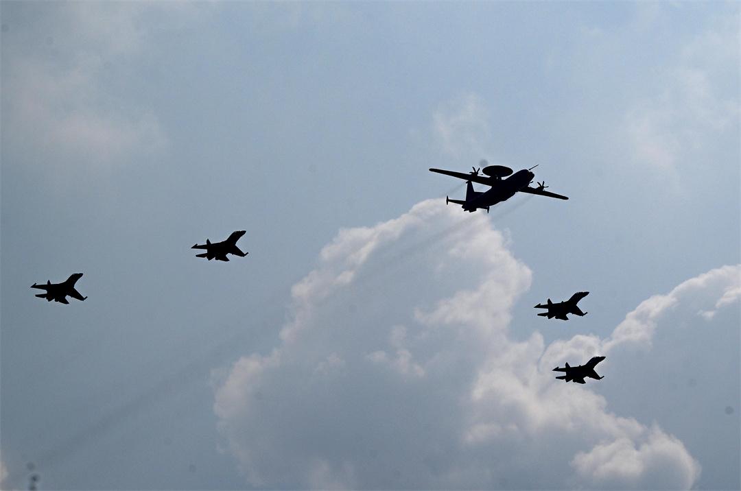 圖為預(yù)警指揮機(jī)梯隊(duì)接受檢閱。本報(bào)記者 楊晉峰 攝