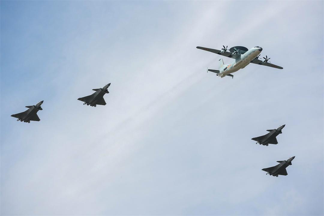 圖為空警-500和殲-20編隊(duì)通場(chǎng)。張楠 攝
