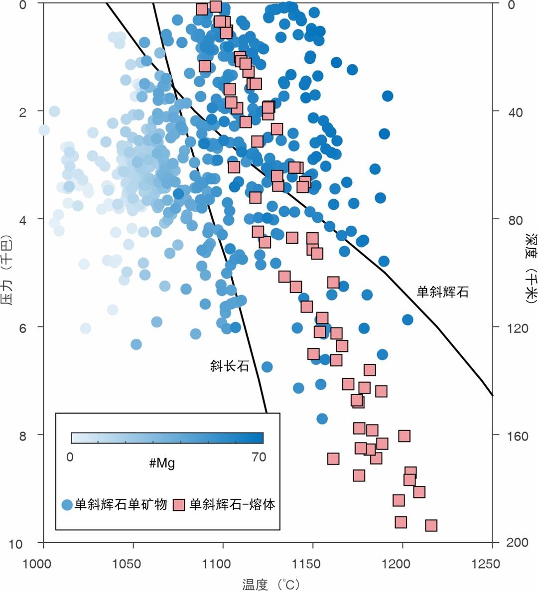圖為單斜輝石單礦物、單斜輝石-熔體溫壓計溫度壓力計算及巖石學(xué)模型模擬。