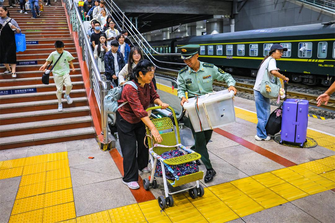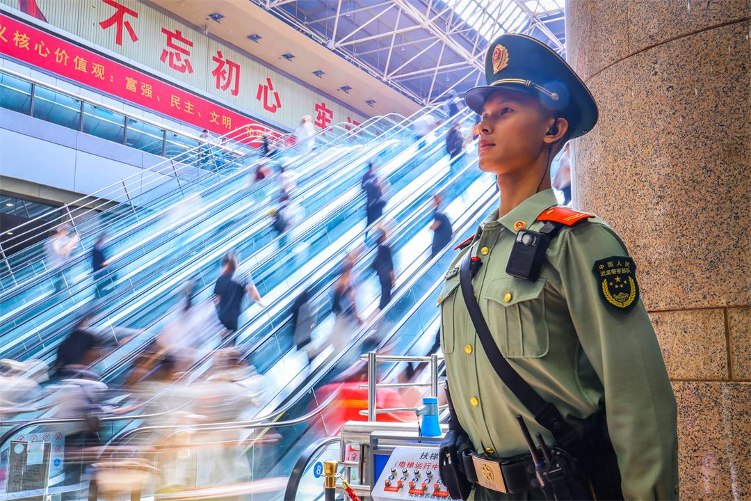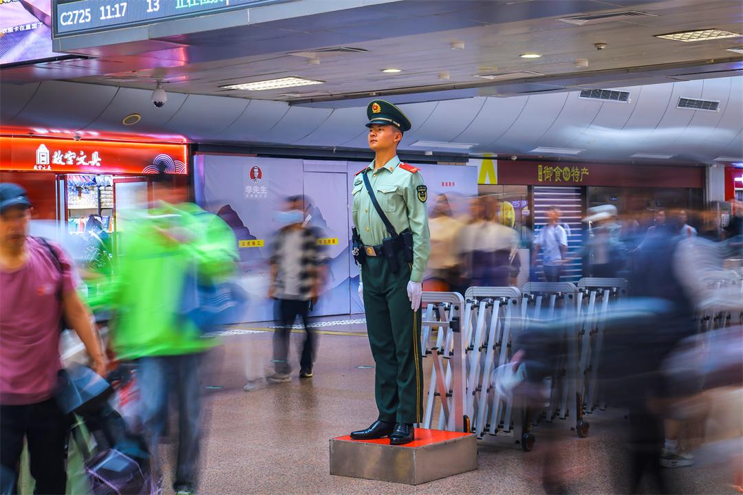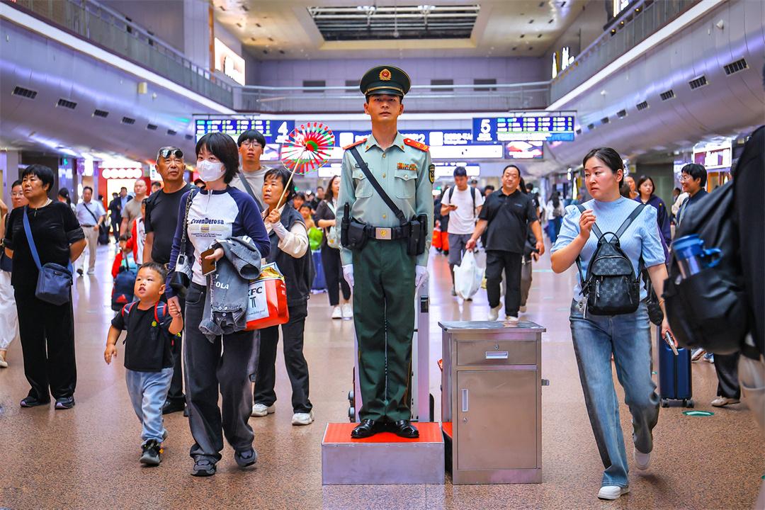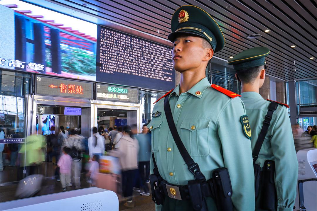 國慶假期最后兩天,北京鐵路交通樞紐迎來雙向返程客流高峰。為保障旅客安全有序出行,武警北京總隊執(zhí)勤第六支隊官兵堅守執(zhí)勤戰(zhàn)位,與重點站區(qū)管委會、鐵路公安等部門搭建聯(lián)防聯(lián)控體系,通過實時客流監(jiān)測系統(tǒng)動態(tài)調整勤務部署,在進出站口、安檢區(qū)、候車大廳等關鍵點位設置警戒哨,協(xié)助維護秩序,熱心提供幫助,以實際行動確保旅客平安順利出行。