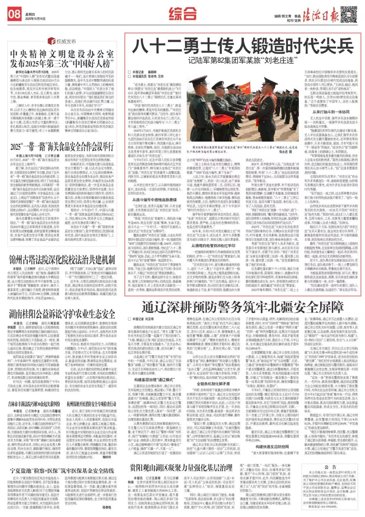 任務(wù)最吃緊的數(shù)十個(gè)小時(shí)里,他們?nèi)找共恍莸匮b沙袋、固堤壩、堵缺口,就像82年前的先輩們堅(jiān)守陣地那樣,用身體構(gòu)成防洪堤,最終圓滿完成任務(wù)。如今,那張摁有26枚紅手印的請(qǐng)戰(zhàn)書(shū),被收藏進(jìn)“劉老莊連”榮譽(yù)室。