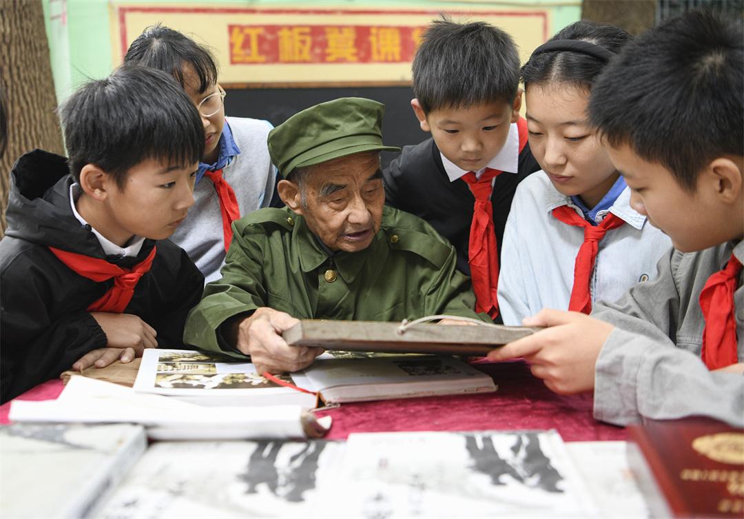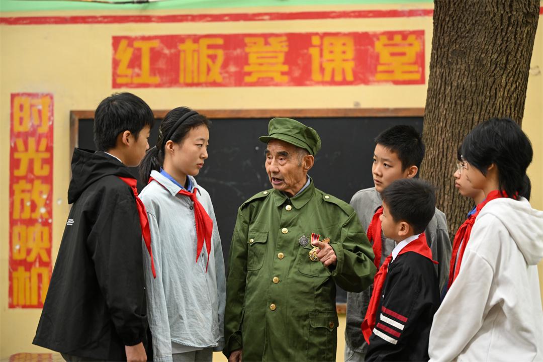 在10月25日中國(guó)人民志愿軍抗美援朝出國(guó)作戰(zhàn)75周年紀(jì)念日到來(lái)之際,安徽省合肥市蜀山區(qū)南七街道洪崗社區(qū)“紅板凳課堂”,邀請(qǐng)95歲抗美援朝老兵張秉軸給孩子們講述戰(zhàn)斗故事,引導(dǎo)他們緬懷革命先烈,爭(zhēng)當(dāng)新時(shí)代好少年。
