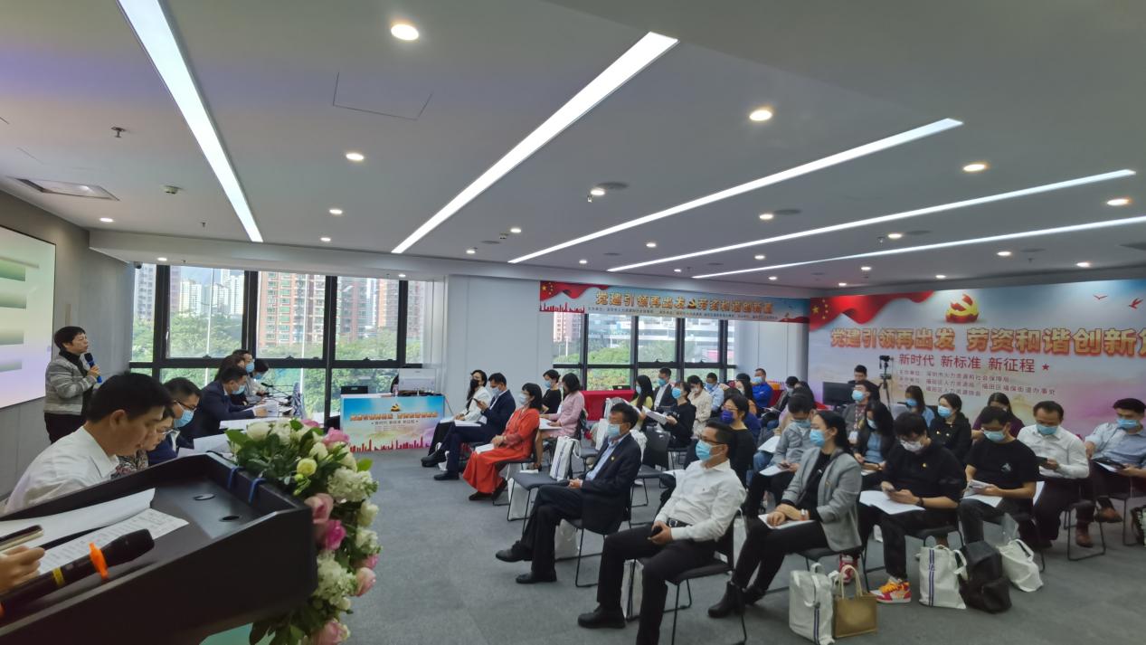 12月16日,廣東省深圳市人力資源和社會保障局聯(lián)合福田區(qū)人力資源局、福田區(qū)福保街道辦事處在河套深港科技合作區(qū)福保園區(qū)黨群服務(wù)中心舉辦“黨建引領(lǐng)再出發(fā) 勞資和諧創(chuàng)新篇”座談會。