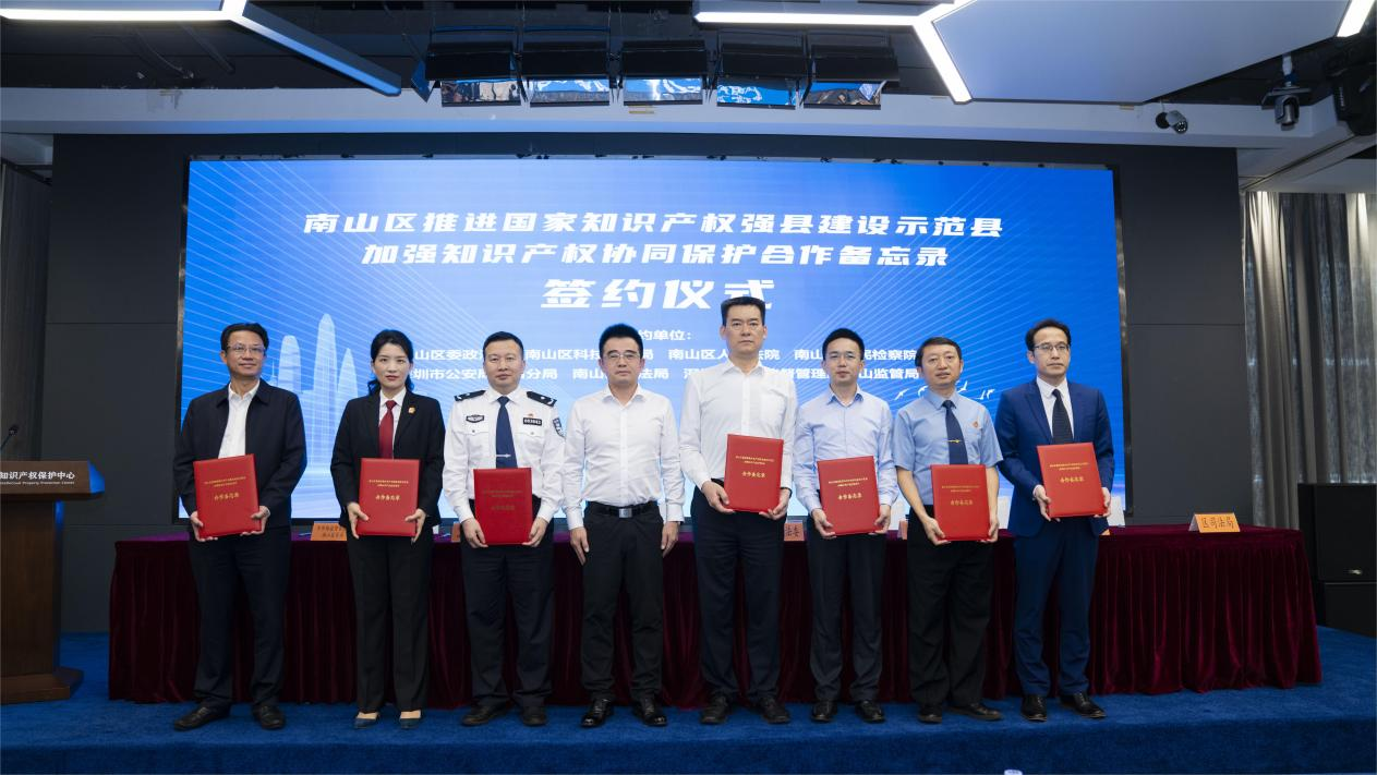 簽約儀式上,南山區(qū)委政法委、南山區(qū)科技創(chuàng)新局、南山區(qū)人民法院、南山區(qū)人民檢察院、南山區(qū)公安分局、南山區(qū)司法局、深圳市市場監(jiān)督管理局南山監(jiān)管局等7家單位共同簽約了《推進國家知識產(chǎn)權(quán)強縣建設(shè)示范縣 加強知識產(chǎn)權(quán)協(xié)同保護合作備忘錄》(以下簡稱《合作備忘錄》)。