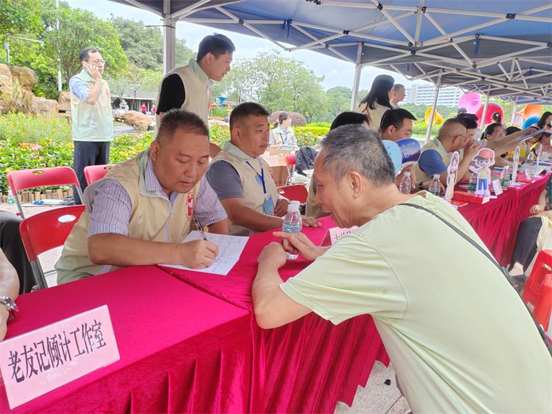 在活動現(xiàn)場,有一隊(duì)“志愿馬甲”格外亮眼,他們是來自廣東省信訪春雨志愿服務(wù)隊(duì)、廣州“穗信連心”志愿服務(wù)隊(duì)的信訪志愿者,以及來自大德、穗星、廣愛、普愛、北斗星等社工服務(wù)機(jī)構(gòu)的信訪社工。他們身著各自特色標(biāo)識服裝,在現(xiàn)場“擺攤設(shè)點(diǎn)”,面對面服務(wù)群眾,對有疑問的群眾提供現(xiàn)場咨詢,對有訴求的群眾幫助梳理訴求,以真誠溝通、真情服務(wù)換來群眾的滿意點(diǎn)贊。