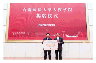 2月28日,重慶市委常委、宣傳部部長張鳴為西南政法大學(xué)人權(quán)學(xué)院和《人權(quán)法學(xué)》雜志揭牌。西政人權(quán)學(xué)院由此成為全國高校中首家人權(quán)學(xué)院。重慶市委宣傳部常務(wù)副部長曹清堯,市委宣傳部副部長馬然希,市委教育工委專職副書記覃正杰,光明日報重慶記者站站長張國圣,重慶新華書店集團(tuán)黨委副書記、重慶陸海國際傳播公益基金會理事長林江以及各市級相關(guān)單位處室負(fù)責(zé)人蒞臨揭牌儀式。揭牌儀式由西南政法大學(xué)黨委書記樊偉主持。黨委副書記、校長付子堂,黨委副書記吳鈺鴻等領(lǐng)導(dǎo)及人權(quán)學(xué)院師生代表共同見證了全國首家人權(quán)學(xué)院的成立。