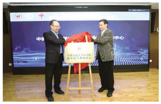 圖為姜偉(右)和王軼為“中國人民大學(xué)法學(xué)院數(shù)字法學(xué)教研中心”揭牌。