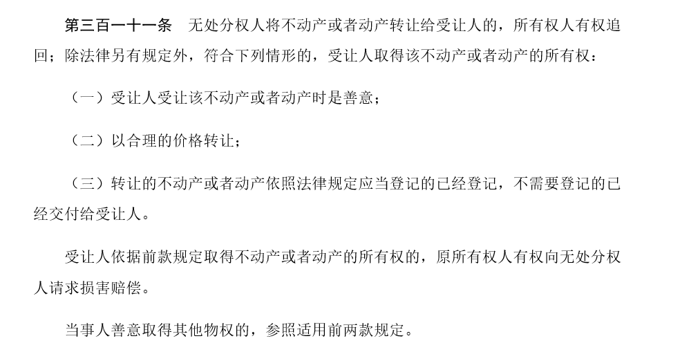 善意取得是所有權(quán)取得的一種特別方式。民法典第三百一十一條對善意取得制度作出了專門規(guī)定。