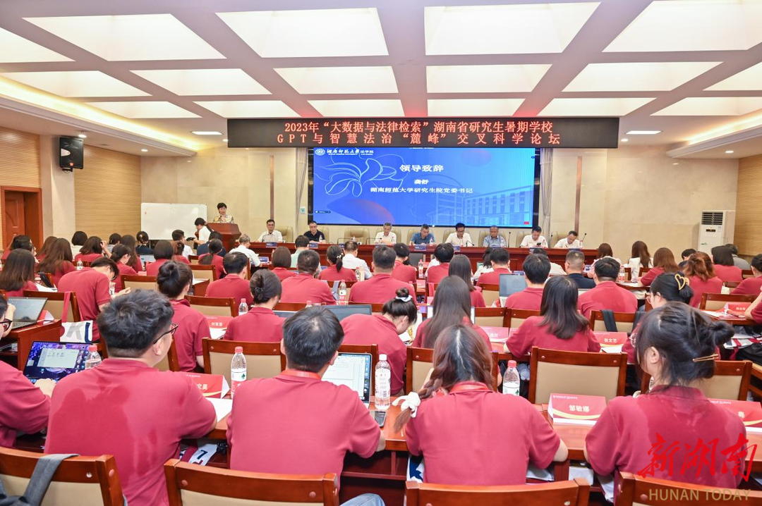 8月1日,“大數(shù)據(jù)與法律檢索”湖南省研究生暑期學(xué)校在湖南師范大學(xué)法學(xué)院開班,并在開幕式后舉行了GPT與智慧法治“麓峰”交叉學(xué)科論壇。來自最高人民檢察院、北京大學(xué)、中國人民大學(xué)、北大法寶等單位近30位專家學(xué)者對上述前沿問題給出了答案,暑期學(xué)校128名學(xué)員線下參與學(xué)習(xí)。1.2萬余人通過北大法寶學(xué)堂平臺觀看了同步直播。