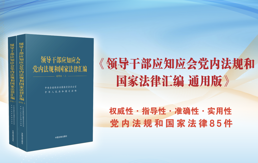 為更好貫徹落實(shí)《意見(jiàn)》部署要求,中央依法治國(guó)辦、司法部編輯了《領(lǐng)導(dǎo)干部應(yīng)知應(yīng)會(huì)黨內(nèi)法規(guī)和國(guó)家法律匯編 通用版》(以下簡(jiǎn)稱 《匯編》),供各級(jí)領(lǐng)導(dǎo)干部學(xué)習(xí)使用。《匯編》重點(diǎn)圍繞領(lǐng)導(dǎo)干部“應(yīng)知應(yīng)會(huì)”這一基本要求,聚焦領(lǐng)導(dǎo)干部在工作中應(yīng)當(dāng)學(xué)習(xí)掌握的黨內(nèi)法規(guī)和國(guó)家法律,共收錄黨內(nèi)法規(guī)和國(guó)家法律 85 件。黨內(nèi)法規(guī)包括黨章、黨的組織法規(guī)、黨的領(lǐng)導(dǎo)法規(guī)、黨的自身建設(shè)法規(guī)、黨的監(jiān)督保障法規(guī)五個(gè)方面;國(guó)家法律包括憲法及憲法相關(guān)法、國(guó)家安全法律、推動(dòng)高質(zhì)量發(fā)展相關(guān)法律、民法典、刑法和公職人員政務(wù)處分法、行政法律、其他法律法規(guī)七個(gè)方面?!秴R編》收錄的均為現(xiàn)行有效且向社會(huì)公開(kāi)發(fā)布的黨內(nèi)法規(guī)和國(guó)家法律的標(biāo)準(zhǔn)文本,注重突出權(quán)威性和準(zhǔn)確性,是各級(jí)領(lǐng)導(dǎo)干部學(xué)習(xí)使用黨內(nèi)法規(guī)和國(guó)家法律的重要工具書(shū)。