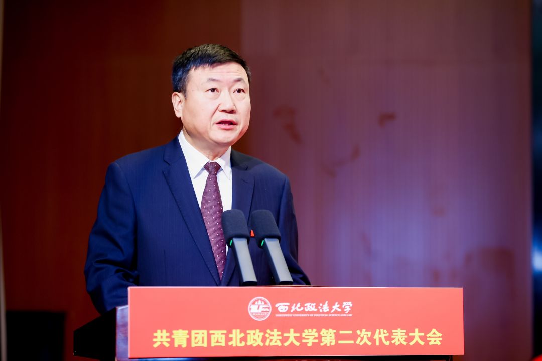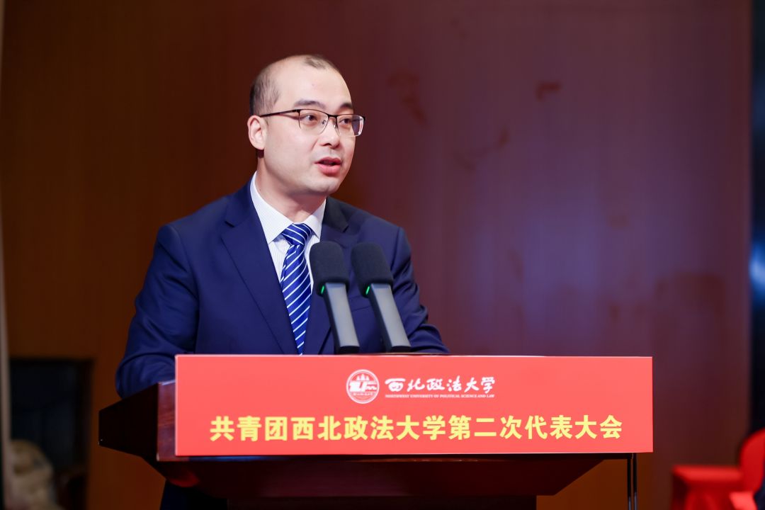 郭武軍代表學(xué)校黨委向大會的召開表示熱烈祝賀,向長期以來關(guān)心和支持學(xué)校共青團(tuán)工作的共青團(tuán)陜西省委、省教育團(tuán)工委以及兄弟院校表示感謝,并充分肯定了學(xué)校各級團(tuán)組織團(tuán)結(jié)帶領(lǐng)廣大團(tuán)員青年取得的成績和貢獻(xiàn)。他強(qiáng)調(diào)西法大青年要堅定理想信念,樹立報國之志,以昂揚(yáng)之姿馳騁青春賽道;要傳承紅色基因,涵養(yǎng)浩然之氣,以擔(dān)當(dāng)之勇砥礪前行之路;要勇立時代前沿,提升創(chuàng)新之能,以進(jìn)取之心探索未知領(lǐng)域;要時刻牢記以人民為中心,踐行法治精神,在中國式現(xiàn)代化建設(shè)中挺膺擔(dān)當(dāng)。