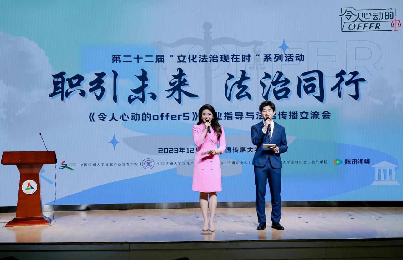 為更好地落實國家憲法日暨全國法制宣傳日要求,12月2日下午,由中國傳媒大學文化產(chǎn)業(yè)管理學院、中國傳媒大學文化產(chǎn)業(yè)管理學院文化法治研究中心與中國傳媒大學法律協(xié)會聯(lián)合主辦的第二十二屆“文化法治現(xiàn)在時”開幕式暨《令人心動的offer5》職業(yè)指導與法治傳播交流會在中國傳媒大學成功舉辦。中國傳媒大學黨委副書記李眾出席本次活動。
