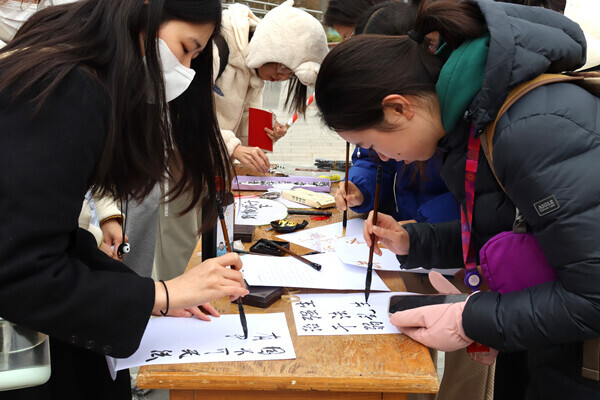 同一天,主題活動在清華大學學生服務中心前舉辦?;顒油ㄟ^限時背誦憲法名言、法律知識問答等游戲方式,向師生普及憲法,引導學習憲法?,F(xiàn)場設計了“想點大事”“三行情書”“與法同行”“現(xiàn)身‘書法’”等活動,鼓勵師生們以筆書寫憲法意,以心感悟憲法情?,F(xiàn)場還準備了帶有宣傳法治內容的小夜燈、筆記本、卡套、文件夾等文創(chuàng)獎品。