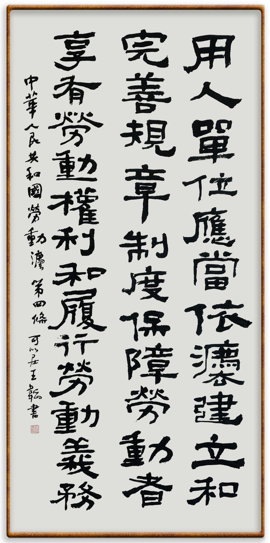 法律,是勞動(dòng)者奮斗前行的后盾。在“五一”國際勞動(dòng)節(jié)這個(gè)崇尚勞動(dòng)、贊美勞動(dòng)者的日子里,“書·法”系列活動(dòng)邀請(qǐng)書法家及書法愛好者們將筆端對(duì)準(zhǔn)《中華人民共和國勞動(dòng)法》,共同書寫新時(shí)代勞動(dòng)者新的榮光!