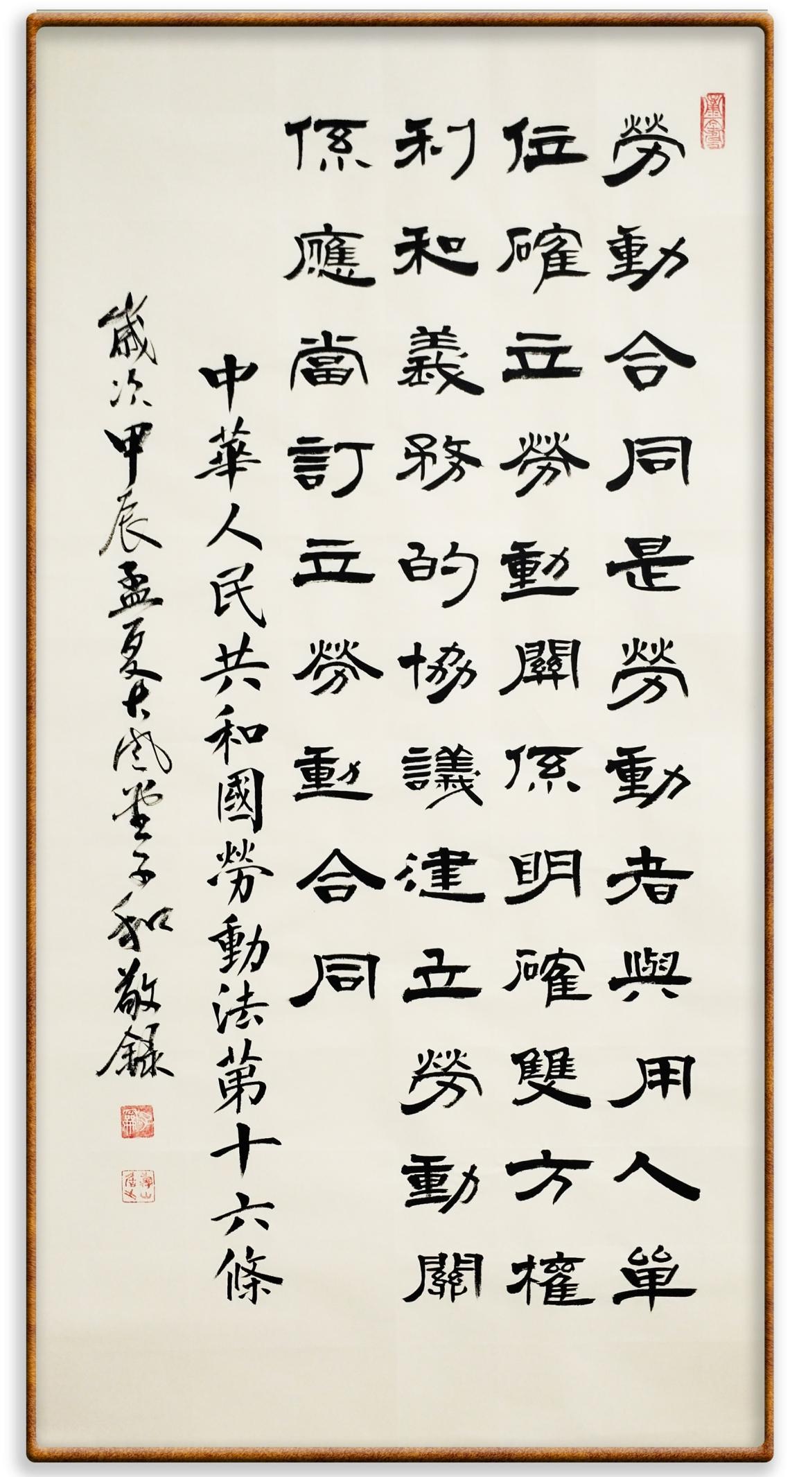 法律,是勞動(dòng)者奮斗前行的后盾。在“五一”國際勞動(dòng)節(jié)這個(gè)崇尚勞動(dòng)、贊美勞動(dòng)者的日子里,“書·法”系列活動(dòng)邀請(qǐng)書法家及書法愛好者們將筆端對(duì)準(zhǔn)《中華人民共和國勞動(dòng)法》,共同書寫新時(shí)代勞動(dòng)者新的榮光!