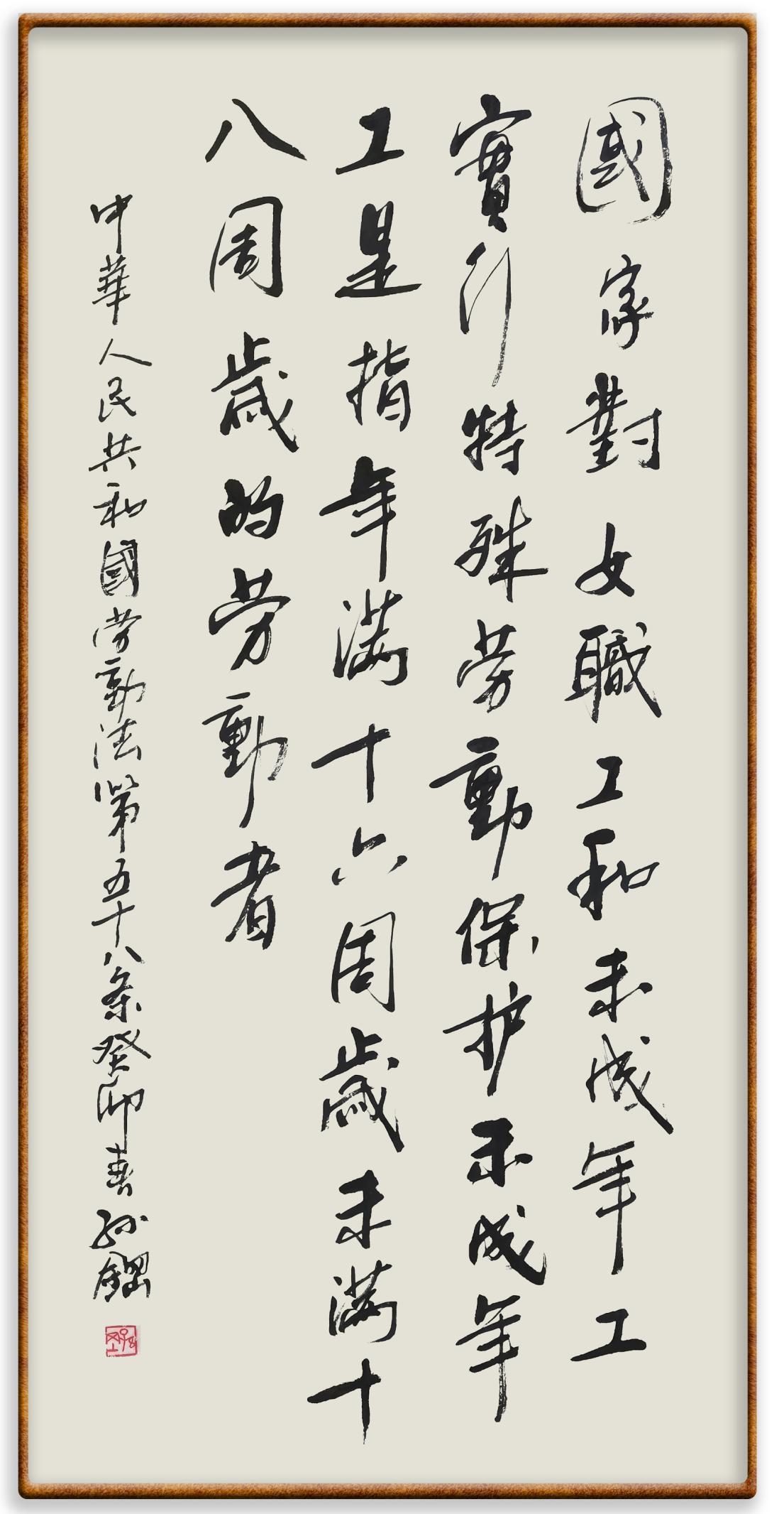 《中華人民共和國勞動法》第五十八條 國家對女職工和未成年工實(shí)行特殊勞動保護(hù)。
