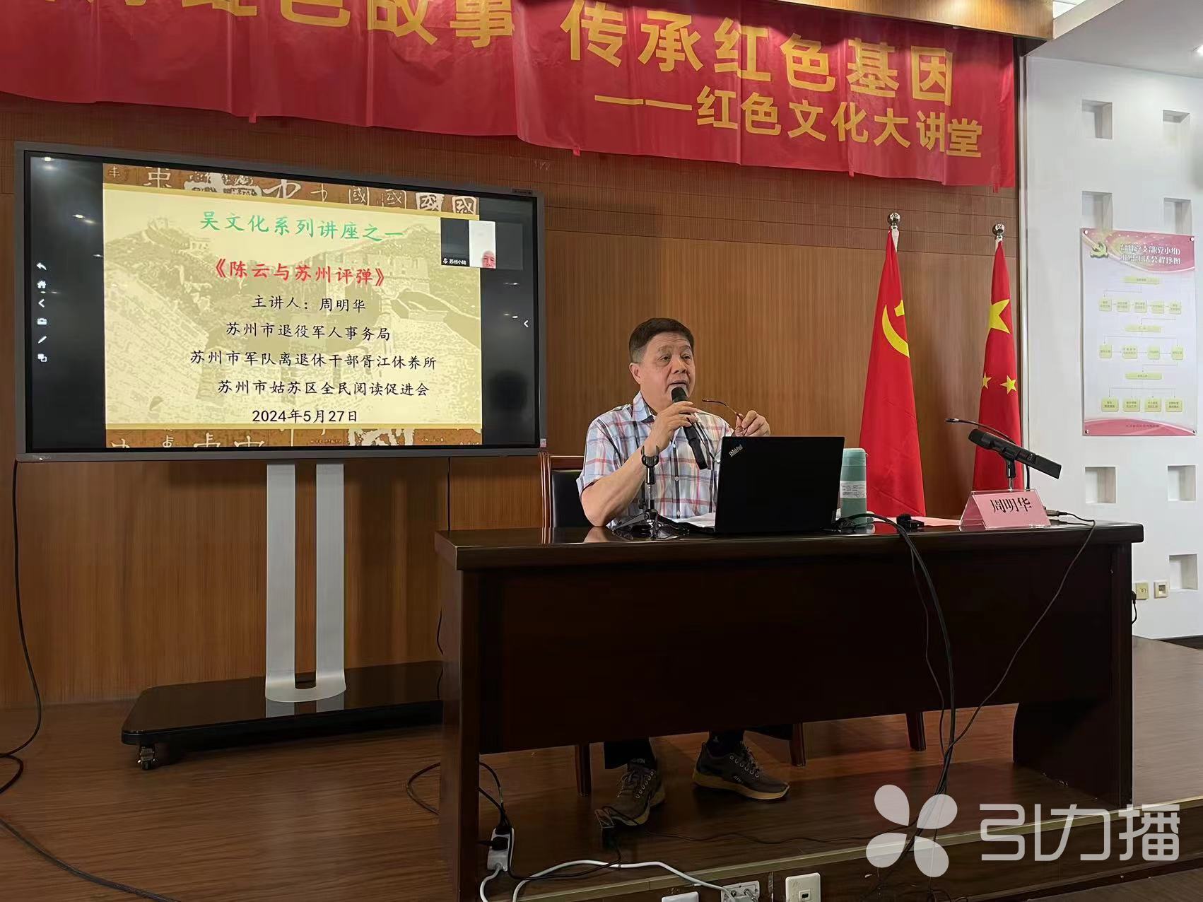 5月27日,首期“紅色文化大講堂”在蘇州市軍隊離休退休干部胥江休養(yǎng)所開講,邀請著名蘇州評話藝術(shù)家周明華主講《陳云與蘇州評彈》,以生動活潑的形式講好紅色故事,傳承紅色基因。