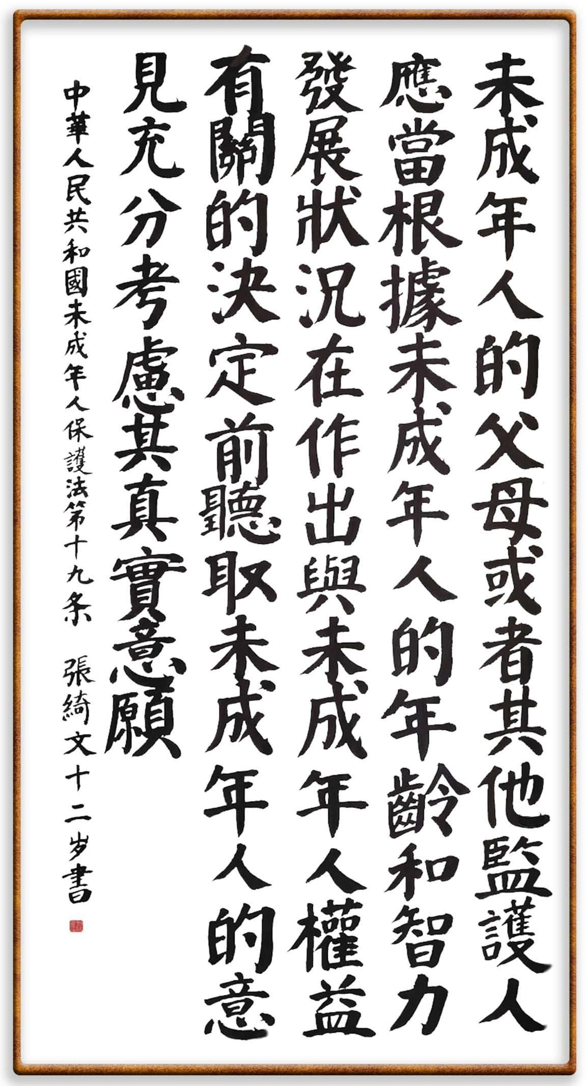 “六一”國際兒童節(jié)來臨之際,法制日?qǐng)?bào)社聯(lián)合(全國)教育書畫協(xié)會(huì)基礎(chǔ)書法教育分會(huì),推出“‘書·法’系列活動(dòng)之書寫《中華人民共和國未成年人保護(hù)法》活動(dòng)”,邀請(qǐng)小朋友書寫部分法條,讓孩子們?cè)跐鉂獾墓?jié)日氛圍中感受傳統(tǒng)文化的獨(dú)特魅力。