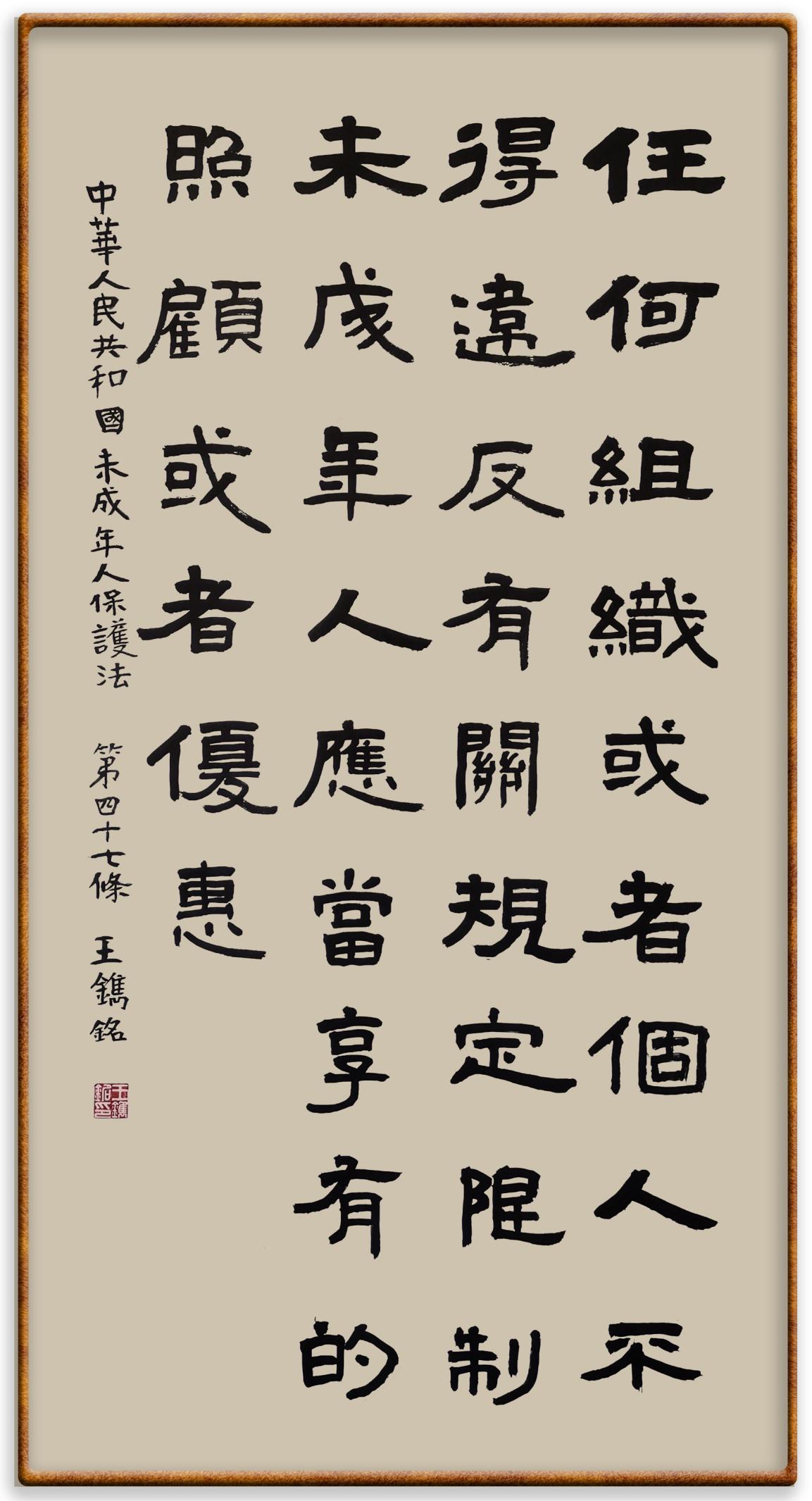 “六一”國際兒童節(jié)來臨之際,法制日?qǐng)?bào)社聯(lián)合(全國)教育書畫協(xié)會(huì)基礎(chǔ)書法教育分會(huì),推出“‘書·法’系列活動(dòng)之書寫《中華人民共和國未成年人保護(hù)法》活動(dòng)”,邀請(qǐng)小朋友書寫部分法條,讓孩子們?cè)跐鉂獾墓?jié)日氛圍中感受傳統(tǒng)文化的獨(dú)特魅力。