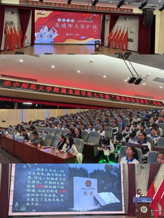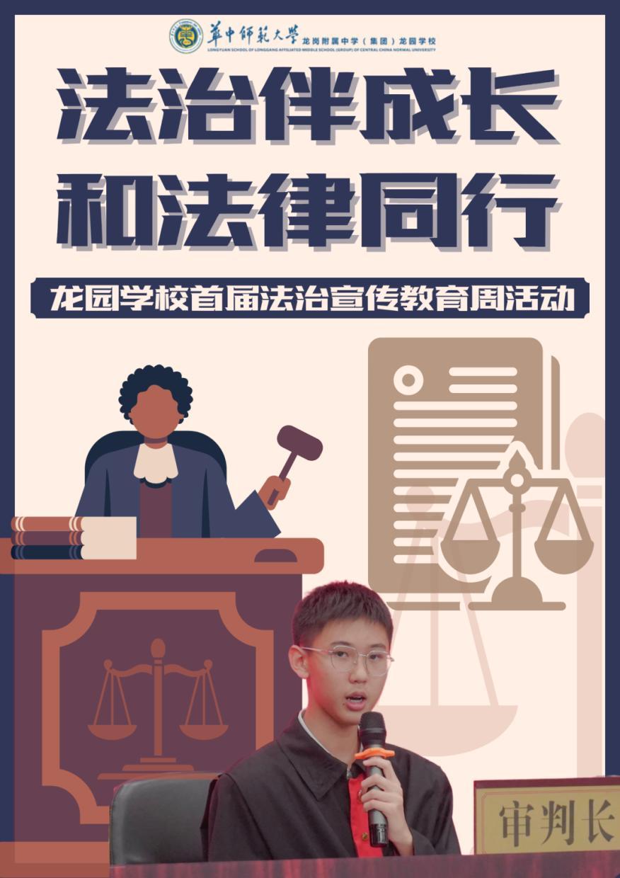 近日,華中師范大學附屬龍園學校開展了為期一周的以“法治伴成長 和法律同行”為主題的青少年法治宣傳教育周活動。