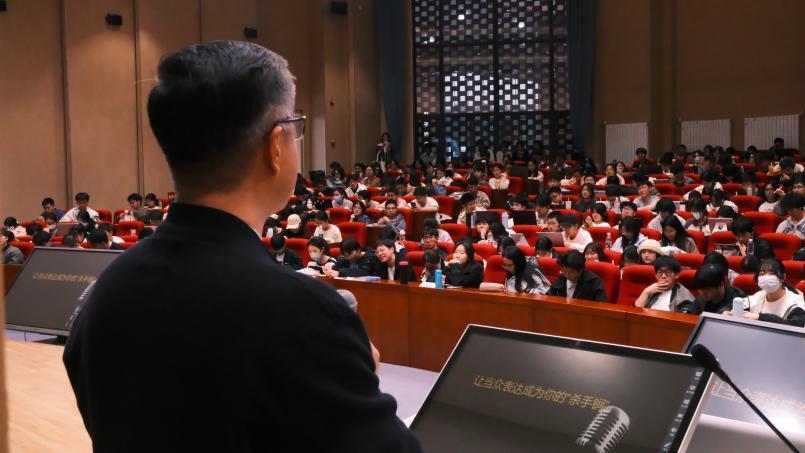 4月10日,一場(chǎng)關(guān)于語(yǔ)言藝術(shù)的精彩講座在北京化工大學(xué)昌平校區(qū)開(kāi)講。國(guó)培源老師以《談青年人語(yǔ)言藝術(shù)之美》為題,為現(xiàn)場(chǎng)師生帶來(lái)了一場(chǎng)充滿(mǎn)智慧與幽默的表達(dá)盛宴。從“社恐”到“社牛”,從“不敢開(kāi)口”到“侃侃而談”,北京廣播電視臺(tái)主持人、評(píng)論員、主任播音員國(guó)培源老師用幾個(gè)實(shí)用技巧,揭示了當(dāng)眾表達(dá)的核心奧秘——“語(yǔ)言是最厲害的武器”。