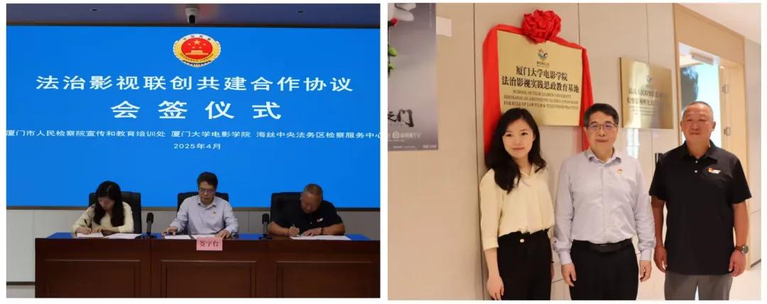 楊善良、林公明、張櫪文分別代表廈門市人民檢察院宣傳和教育培訓(xùn)處、廈門大學(xué)電影學(xué)院、海絲中央法務(wù)區(qū)檢察服務(wù)中心簽訂聯(lián)創(chuàng)共建協(xié)議,共同為“廈門大學(xué)電影學(xué)院法治影視實(shí)踐思政教育基地”揭牌。