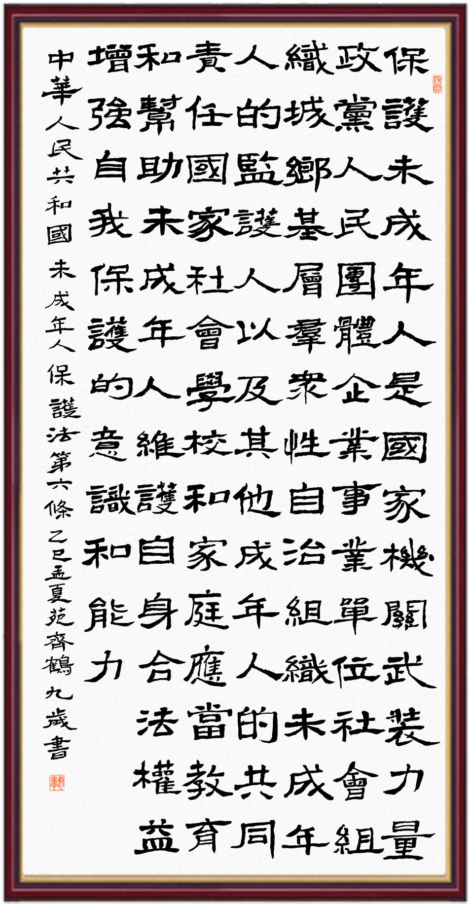 “六一”國(guó)際兒童節(jié)來(lái)臨之際,“書·法”活動(dòng)邀請(qǐng)小朋友們書寫《中華人民共和國(guó)未成年人保護(hù)法》。一筆一畫寫未來(lái),一字一句守純真!