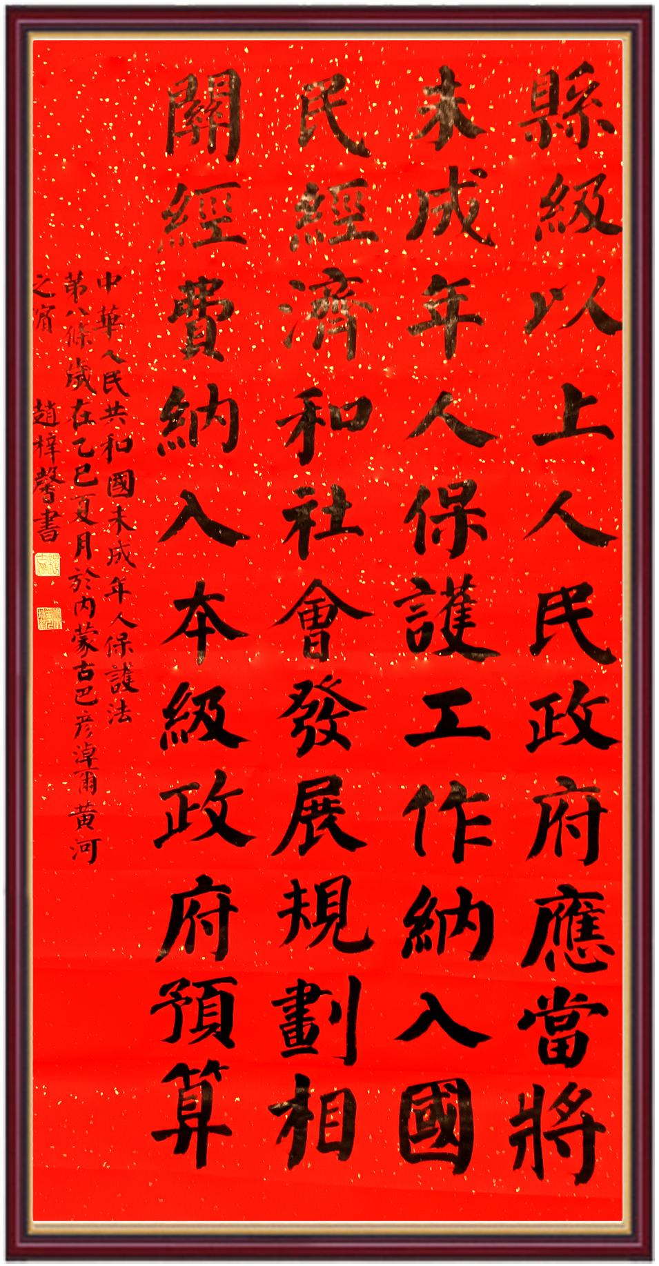 2020年7月11日,“書· 法”系列活動正式啟動?;顒又荚跒閯?chuàng)新法治宣傳教育,多開一點腦洞、多花一點心思、多出一點力量、多做一點貢獻(xiàn),引領(lǐng)和推動更多的人拿起筆來學(xué)法、寫法,在不斷“書·法”過程中,提升自身的法治素養(yǎng),在全社會弘揚(yáng)法治精神。活動啟動以來,已先后組織書寫民法典、土地管理“一法一條例”、法律援助法、憲法、行政處罰法、安全生產(chǎn)法、《信訪工作條例》、野生動物保護(hù)法、澳門特別行政區(qū)基本法、香港特別行政區(qū)基本法、國旗法、國徽法、國歌法、《中國共產(chǎn)黨政法工作條例》、法官法等多部法律法規(guī)。