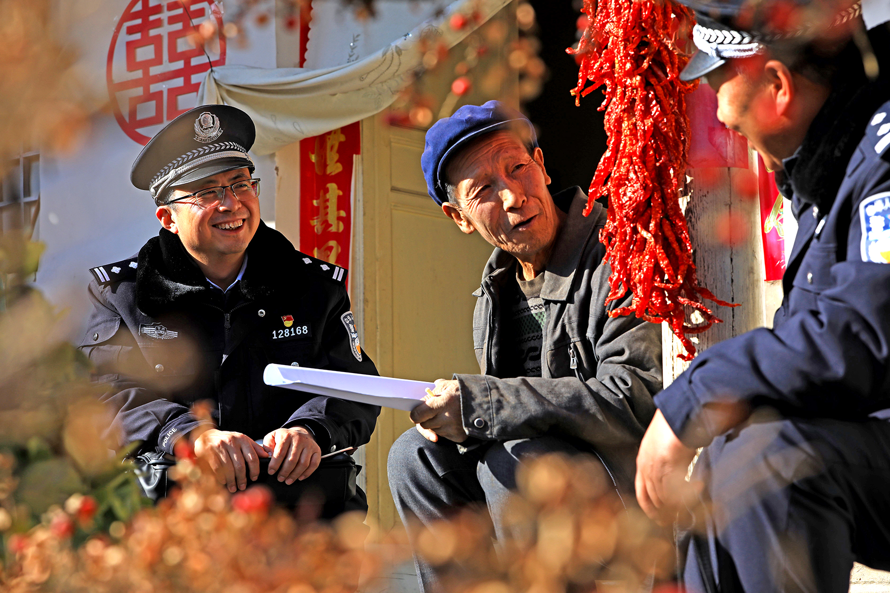 圖為1月6日,民警在城關(guān)鎮(zhèn)賈胡村走訪群眾。