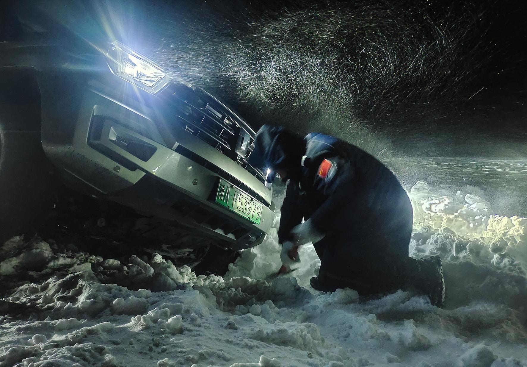 11月11日晚,新疆阿勒泰邊境管理支隊托斯特邊境派出所接到一司機報警求助,稱其駕駛車輛行駛至托斯特鄉(xiāng)森塔斯村夏牧場達(dá)坂處陷入雪中,無法脫困。民警迅速攜帶救援工具前往現(xiàn)場,歷經(jīng)半個小時成功將人員和車輛救出。