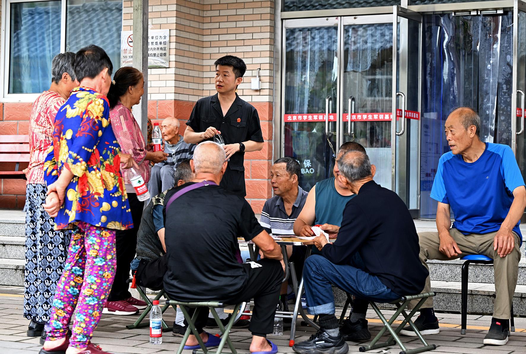 在懷柔區(qū)最大的受災(zāi)群眾安置點(diǎn),懷柔區(qū)人民法院與區(qū)人民檢察院的干警均馳援在此,為群眾提供餐食分發(fā)、情緒疏導(dǎo)、法律咨詢等服務(wù)?!拔艺J(rèn)識(shí)你們,今年5月,你們還去村里給我們普過法?!卑仓命c(diǎn)池大媽的一句話,讓渾身是汗的懷柔區(qū)人民法院湯河口法庭副庭長周科露出了笑容。