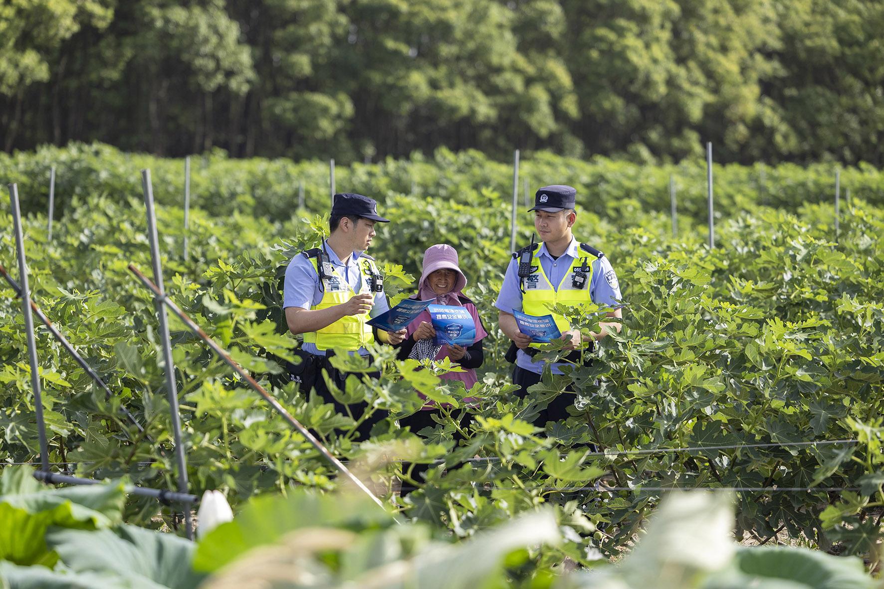 8月11日,上海市公安局崇明分局建設(shè)派出所民警來到轄區(qū)果園,向辛勤勞作的果農(nóng)們開展防范電信網(wǎng)絡(luò)詐騙宣傳。