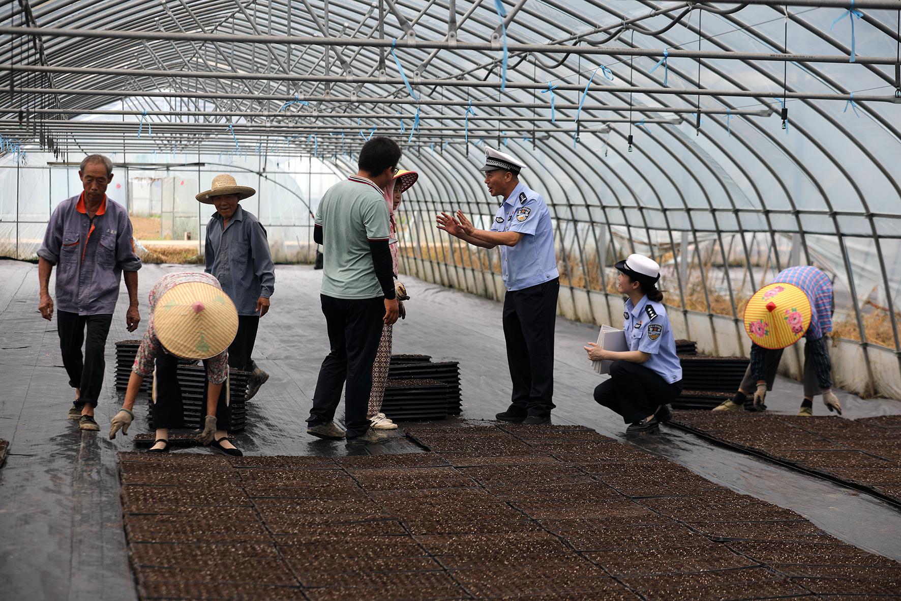 8月13日,安徽省舒城縣公安局交管大隊(duì)桃溪中隊(duì)組織民警深入轄區(qū)大棚種植基地,“點(diǎn)對點(diǎn)”開展交通安全宣傳。