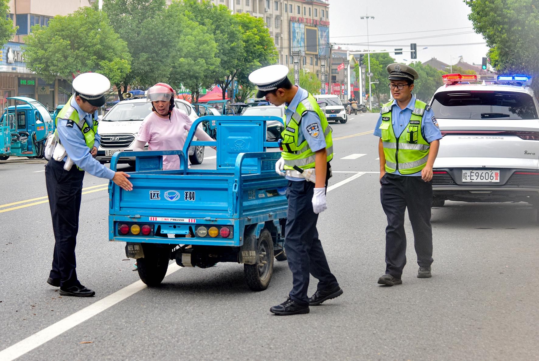 8月13日,安徽省馬鞍山市含山縣公安局交管大隊(duì)清溪中隊(duì)組織民警在轄區(qū)主要路口、車流量較大路段,對電動車騎乘人員未佩戴安全頭盔、不按規(guī)定車道行駛、違規(guī)安裝車棚等交通違法行為進(jìn)行現(xiàn)場教育與勸導(dǎo)。