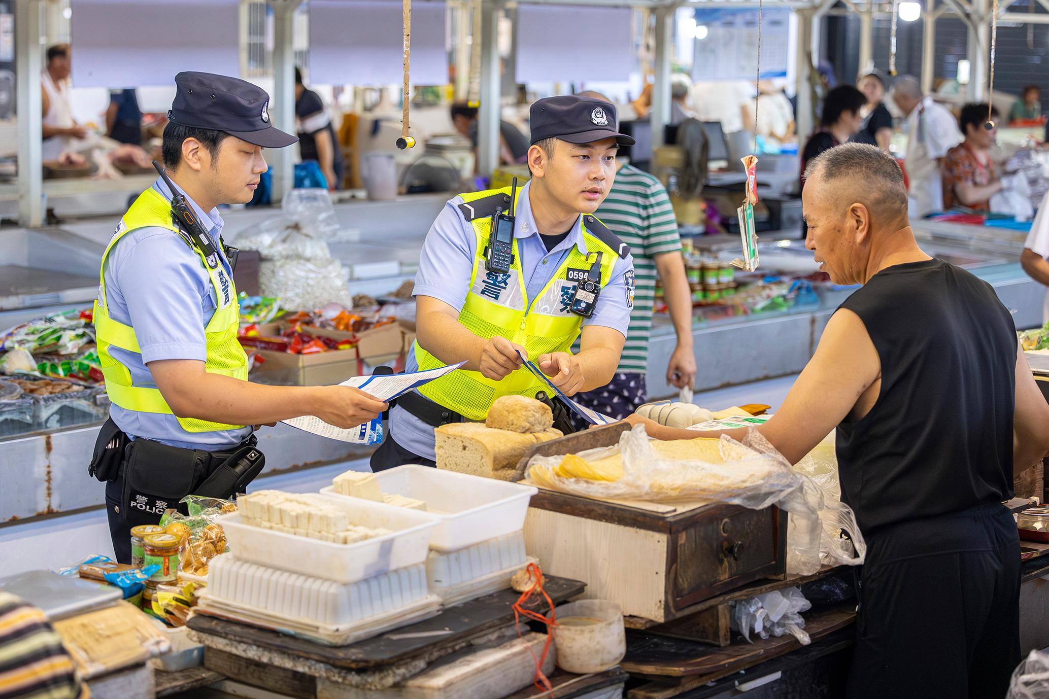 9月8日,上海市公安局崇明分局建設(shè)派出所民警來到轄區(qū)農(nóng)貿(mào)市場,向商戶和群眾開展電信網(wǎng)絡(luò)詐騙防范宣傳。