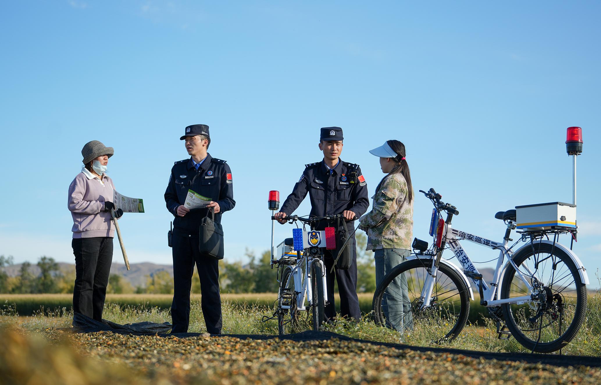 9月22日,新疆阿勒泰邊境管理支隊(duì)老吉木乃邊境派出所“單車110”警務(wù)隊(duì)結(jié)合秋收,開展入戶走訪、上門送證及普法宣傳等工作,精準(zhǔn)打通為民服務(wù)“最后一公里”。