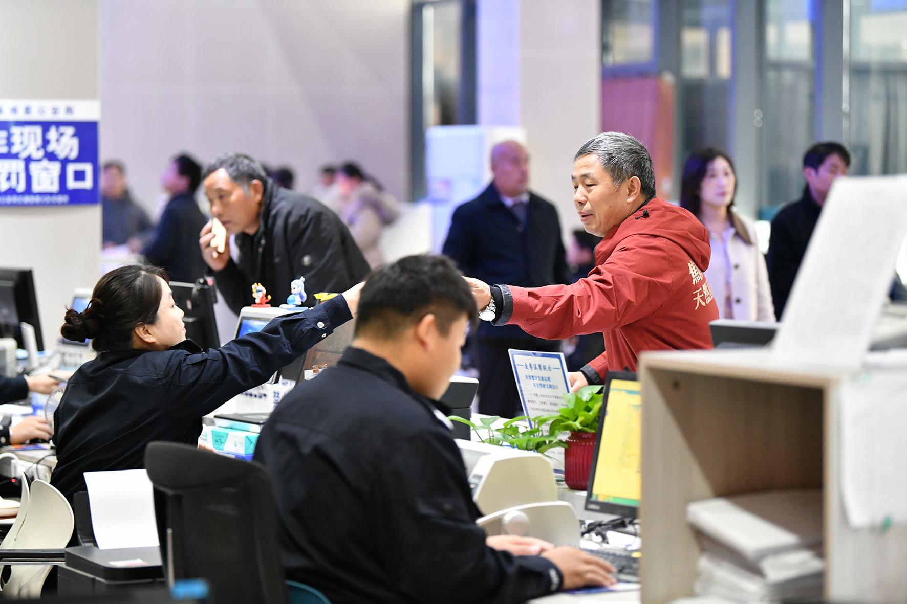 10月20日,安徽省阜南縣公安局車(chē)輛和駕駛?cè)斯芾硭ぷ魅藛T為群眾辦理車(chē)駕管業(yè)務(wù)。阜南縣公安局車(chē)輛和駕駛?cè)斯芾硭鶊?jiān)守“群眾第一、效率第一、質(zhì)量第一”的服務(wù)模式,窗口服做到溝通咨詢零距離、服務(wù)管理零延誤、服務(wù)質(zhì)量零差錯(cuò)、線上線下零障礙,為群眾提供優(yōu)質(zhì)、高效的車(chē)駕管服務(wù)。