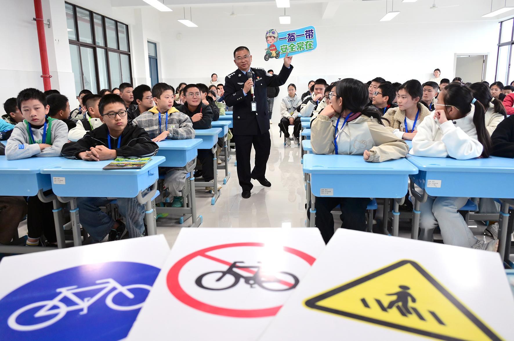 10月20日,安徽省固鎮(zhèn)縣公安局交管大隊民警來到許慎中學為學生們上交通安全課。