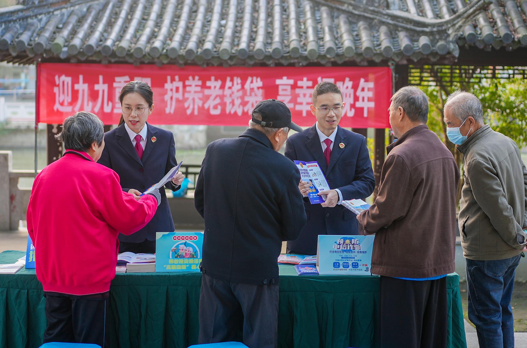 10月27日,江蘇省興化市人民檢察院走進公園開展“迎九九重陽 護養(yǎng)老錢袋 享幸福晚年”的主題活動。