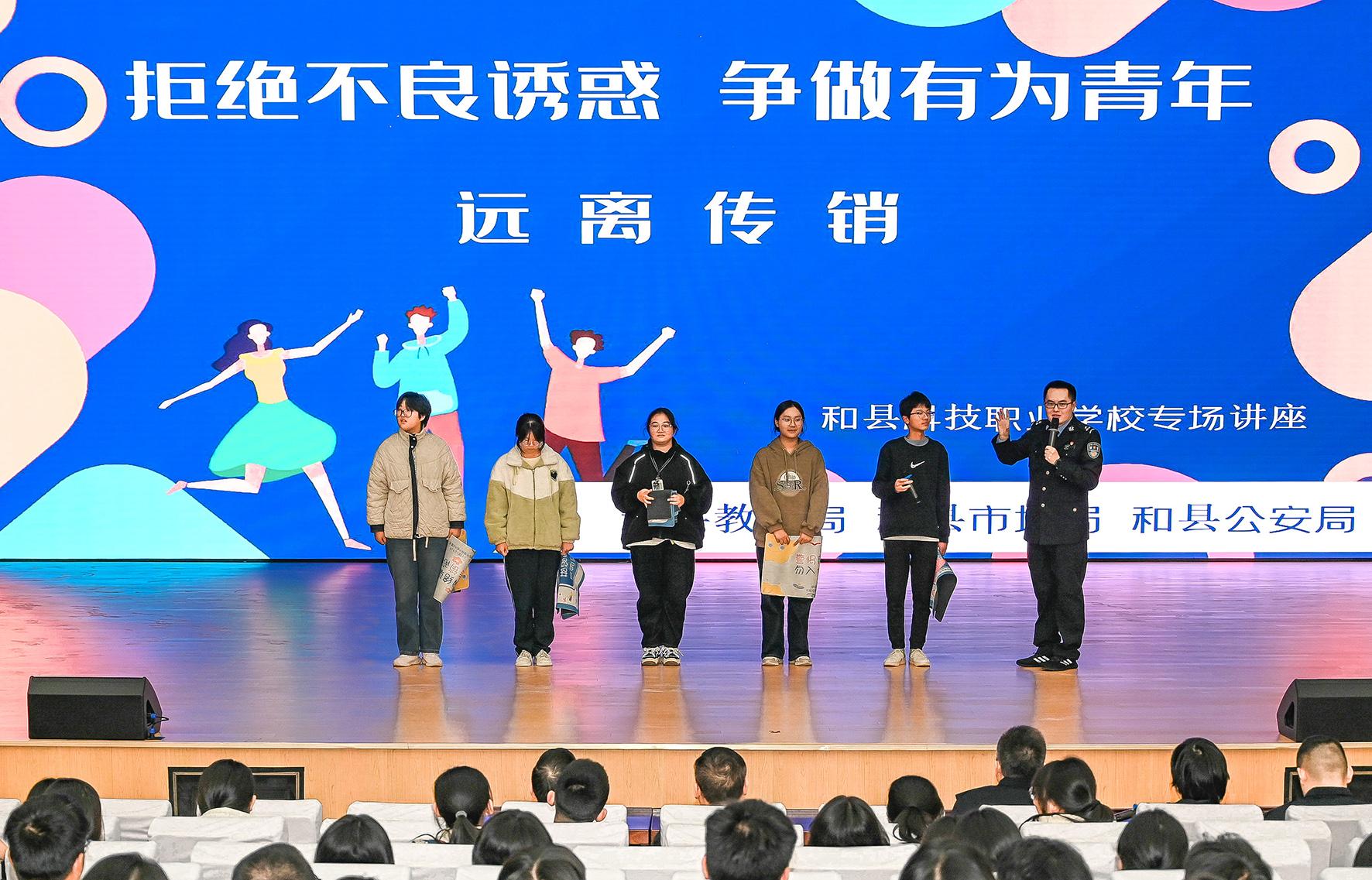 10月27日,安徽省馬鞍山市和縣公安局聯(lián)合市場(chǎng)監(jiān)督管理局走進(jìn)科技職業(yè)學(xué)校,舉辦主題為“拒絕不良誘惑 爭(zhēng)做有為青年”的防范傳銷報(bào)告會(huì)。