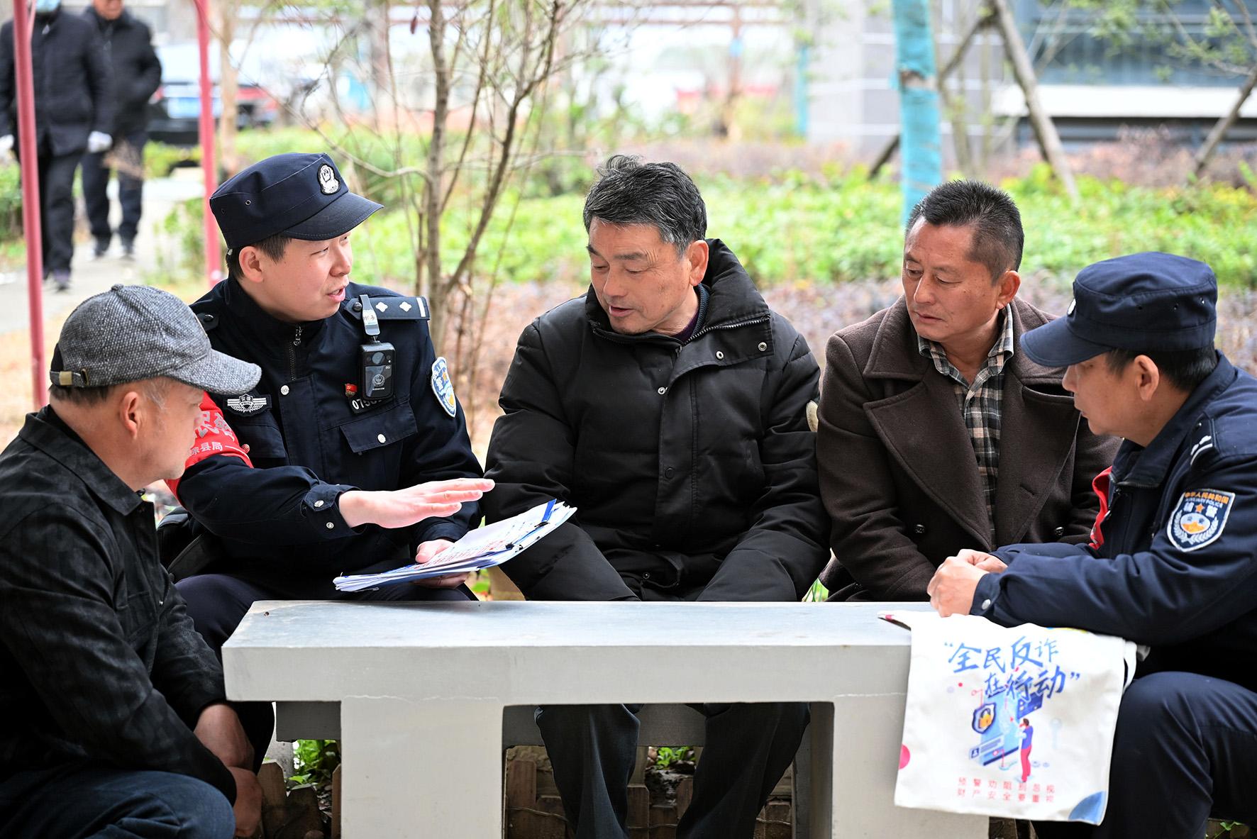 2月25日,湖北省沙洋縣濱江新區(qū)“春風(fēng)行動”專場招聘會上,沙洋縣公安局洪嶺派出所民警現(xiàn)場為求職者拆解“高薪誘惑”“先交費(fèi)后上崗”等招聘騙局套路。
