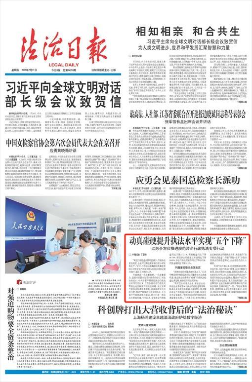 執(zhí)法為民,監(jiān)督為要。江蘇還部署推進省市縣鄉(xiāng)四級全覆蓋行政執(zhí)法協(xié)調(diào)監(jiān)督體系建設(shè),省級、13個設(shè)區(qū)市地方政府全部啟用“行政執(zhí)法協(xié)調(diào)監(jiān)督局”印章,省市縣三級行政執(zhí)法部門設(shè)立法制機構(gòu)(執(zhí)法監(jiān)督機構(gòu))3020個,行政執(zhí)法監(jiān)督隊伍發(fā)展壯大到9073人。創(chuàng)新出臺《行政執(zhí)法協(xié)調(diào)監(jiān)督職責指導清單(1.0版)》,細化明確12項協(xié)調(diào)監(jiān)督事項31項具體職責,并以此為基礎(chǔ)出臺《行政執(zhí)法監(jiān)督文書示范文本(試行)》,編制18種文書樣式,從實體和程序兩方面實現(xiàn)對行政執(zhí)法工作的全方位、全流程、常態(tài)化、長效化監(jiān)督,讓監(jiān)督的“牙齒”真正“咬合”。