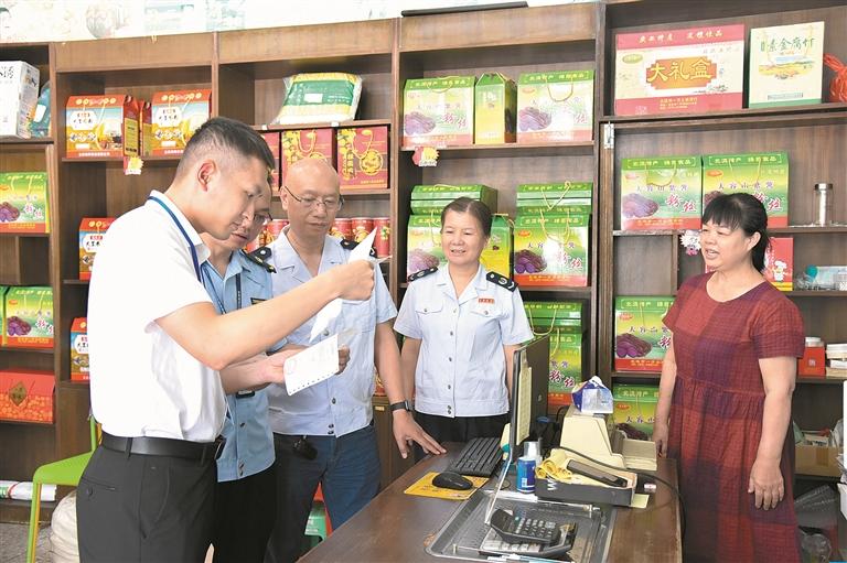 廣西壯族自治區(qū)北流市紀(jì)委監(jiān)委聚焦隱形變異“四風(fēng)”問題,聯(lián)合稅務(wù)、市場監(jiān)督管理等部門組建監(jiān)督檢查組,深挖細(xì)查違規(guī)收送節(jié)禮等違反中央八項(xiàng)規(guī)定精神問題。圖為近日,該市監(jiān)督檢查組到轄區(qū)內(nèi)的土特產(chǎn)店了解有關(guān)情況。李桂泉 攝