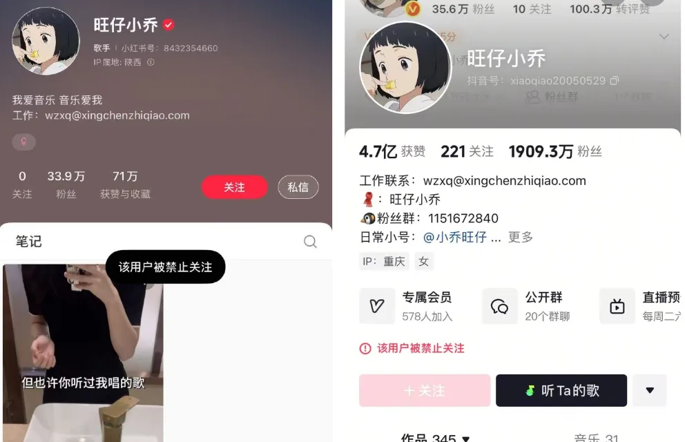 “旺仔小喬”多平臺(tái)賬號(hào)已被禁言或禁止關(guān)注。
