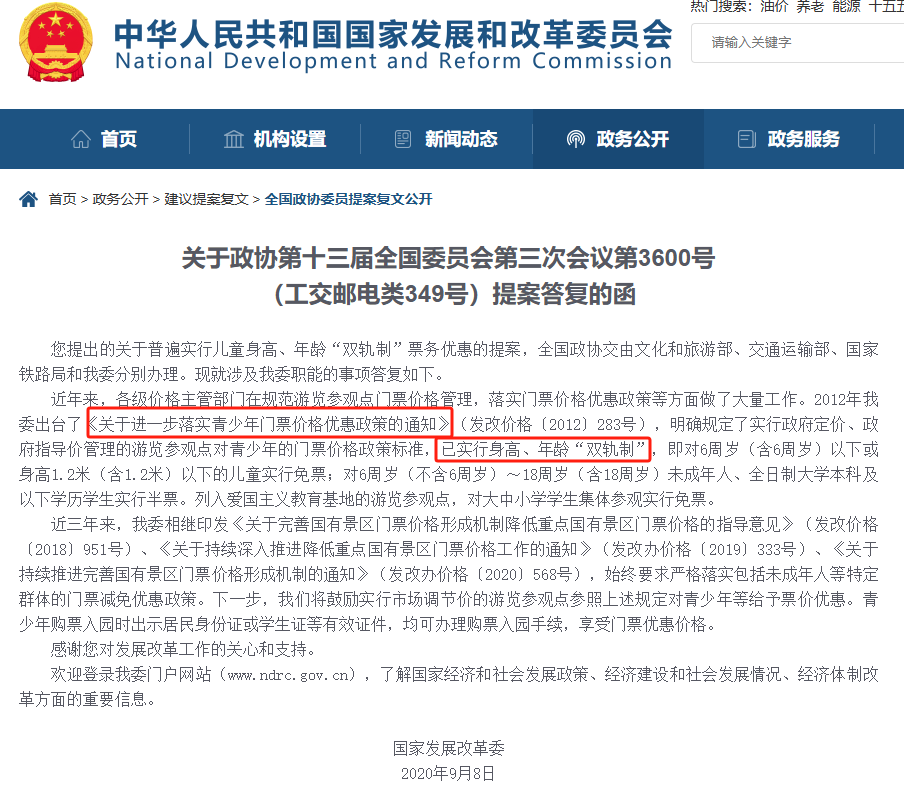 記者梳理發(fā)現(xiàn),國家層面暫無統(tǒng)一的兒童票定價強制性法規(guī)。早在2012年,國家發(fā)改委等部門就曾發(fā)布通知,提出“身高與年齡雙軌制”建議:對6周歲(含)以下或身高1.2米(含)以下的兒童實行免票;對6周歲(不含)至18周歲(含)未成年人實行半票,強調(diào)應(yīng)給予青少年門票的判定標準更多靈活性。